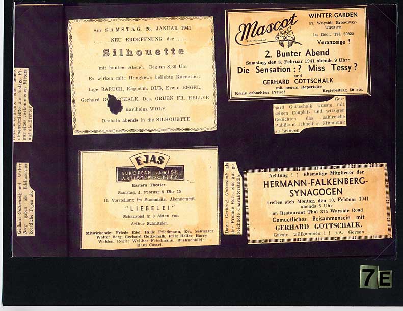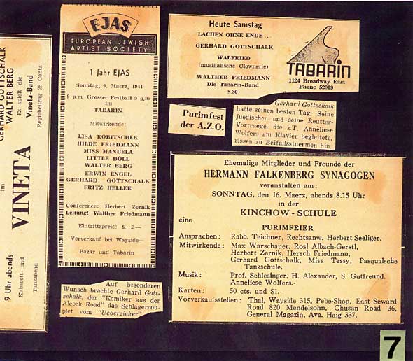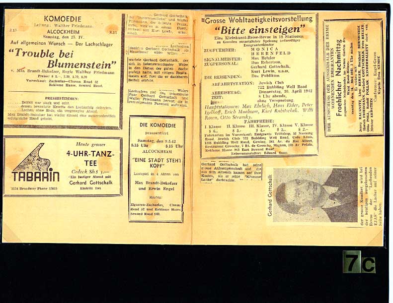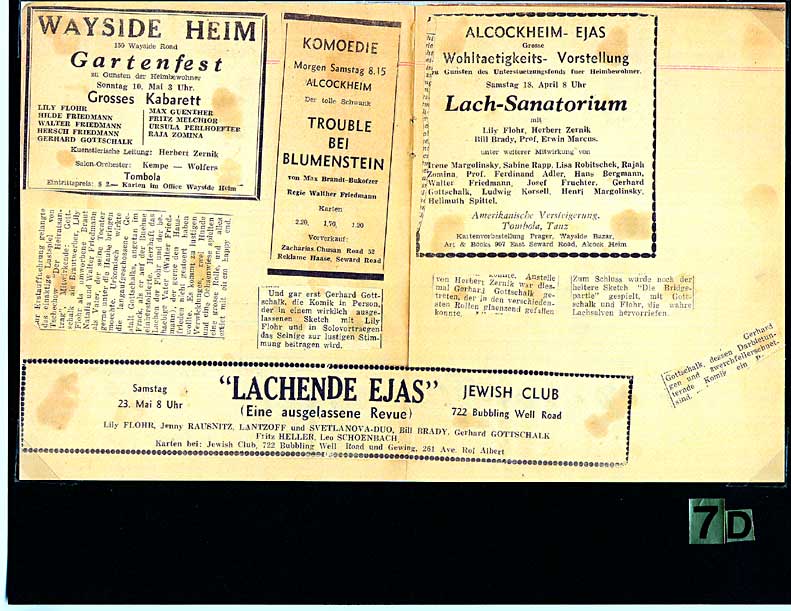 His wit, gaiety, and cheerfulness, which delighted his audiences after a day of toil and trouble, have proved extremely helpful in enduring more easily the unfortunate fate in Shanghai. His popularity and participation in almost all the performances presented at the Hongkew Heime, and in the theaters, are shown in figures 7, 7B, 7C, 7D and 7E.