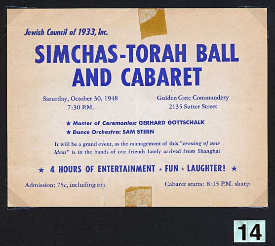 Gerhard Gottschalk continued to delight his audiences after he left Shanghai. He made his new home in San Francisco where he hosted a "Simchas-Torah Ball and Cabaret" shortly after his arrival, shown in figure 14. A true legend to all who remember him. He passed away in San Francisco in 1974.