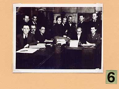 An accolade with a photo of all of Gottschalk’s colleagues is shown in figure five. The staff of the American Joint presented it to him in 1947. Another small photo with Gottschalk and his colleagues in the office is shown in figure six.