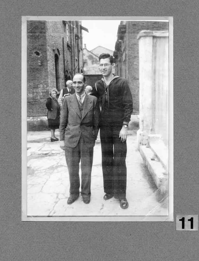 Friendship with the US. Forces was made very fast, as shown in a photograph in figure eleven. Here we see a young American sailor visiting a Jewish refugee in a typical house-lane as other refugees were curiously looking on.