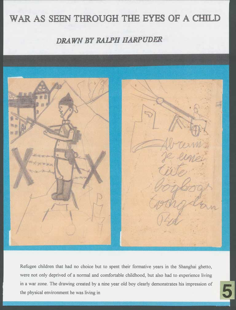 Following Pearl Harbor, air-raid security in Shanghai required all windows to be covered with black-out material during the period following an air-raid alarm. The physical and war related environment was depicted in a drawing by a nine year old boy that lived in the Hongkew Ghetto when all the air-raids occurred. The drawing, shown in figure five, shows a canon and a Japanese Sentry standing guard and holding an open bayonet.