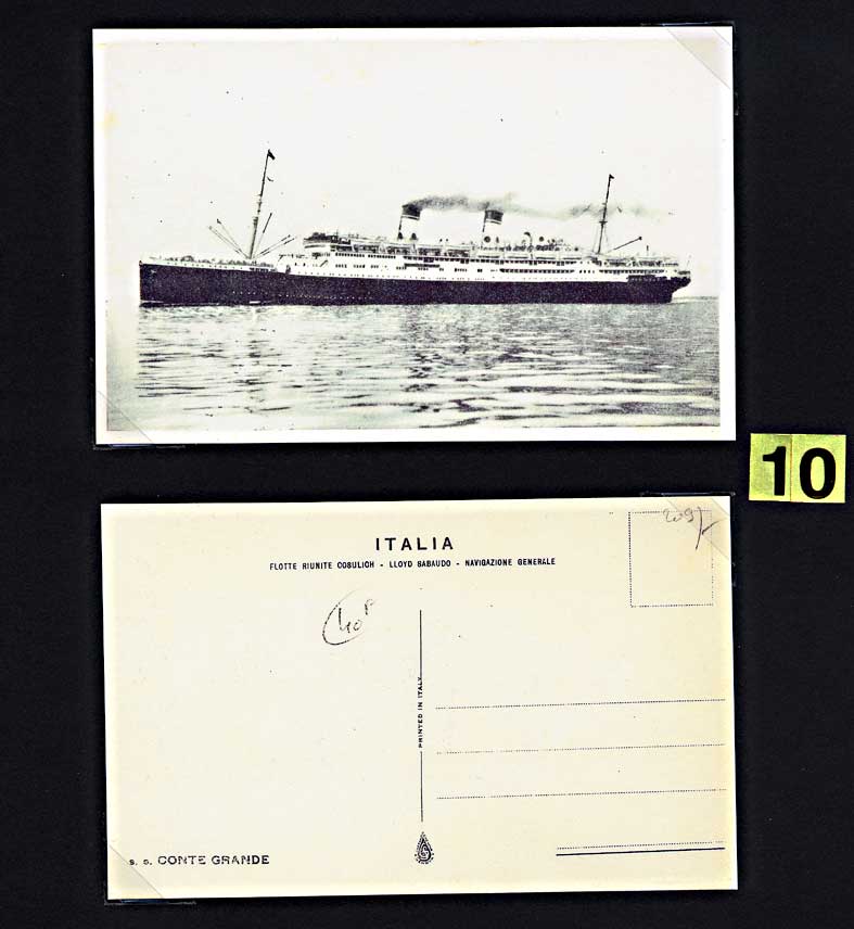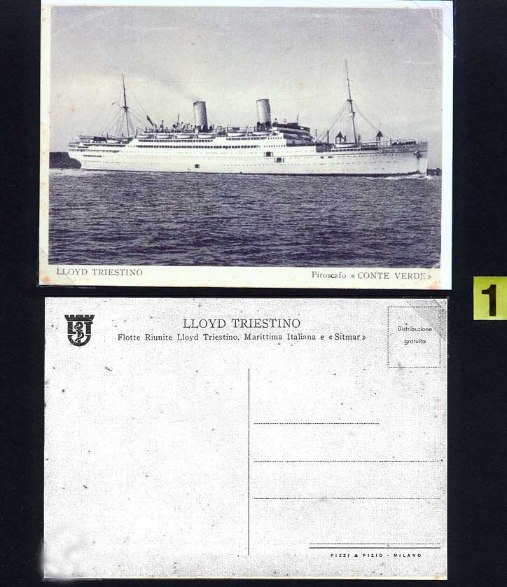 At that time, Lloyd Triestino was the largest Italian steamship company that had a regular line of steamers sailing to the Far East. Its ships were renowned for their luxury and speed. A picture postcard of the Conte Verde, an 18,765 GRT liner is shown in