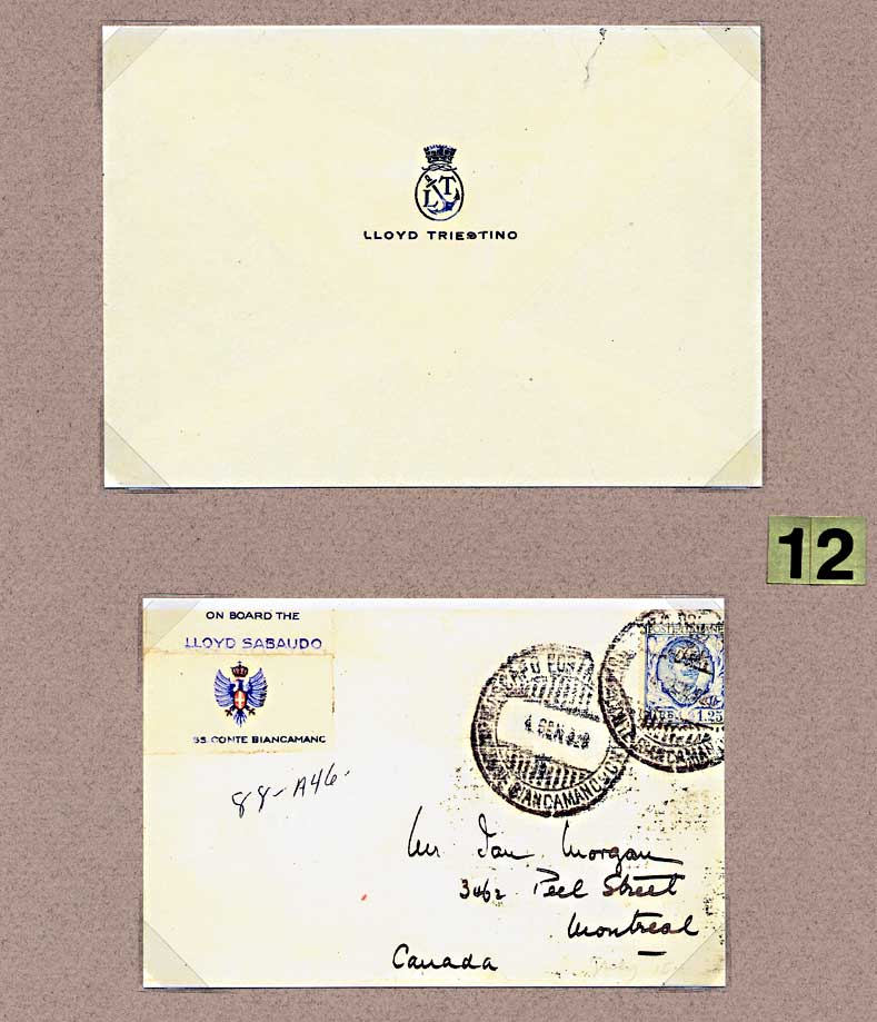 The ship’s line emblem of Lloyd Triestino and Lloyd Sabaudo are shown on their respective envelops in