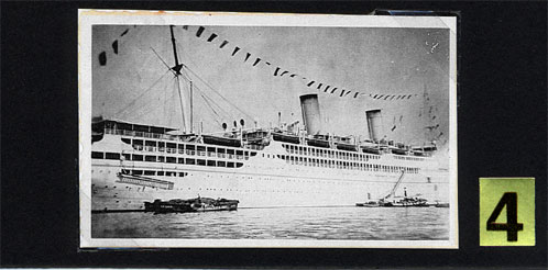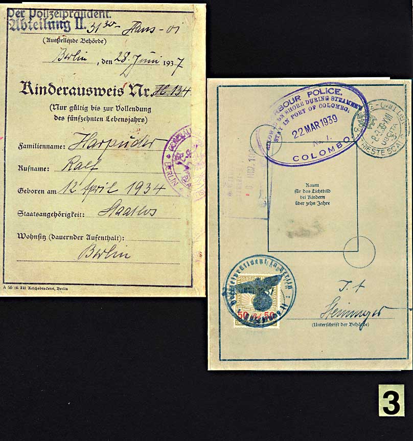 figure one. Originally built for the Lloyd Sabaudo Line, the Conte Verde came under the Lloyd Triestino flag in 1932. Family photographs, including of yours truly, taken on this ship en-route to Shanghai, are shown in figure two. Several ports along the route to Shanghai allowed passengers to disembark for sightseeing. A German passport (Kinderausweis) of yours truly, illustrated in figure three, shows a rubber stamp from the Harbor Police in Colombo that allowed passengers on shore. Colombo was located in Ceylon, now, Sri Lanka. Figure four shows the Conte Verde in Colombo, docked at sea, away from the peer.