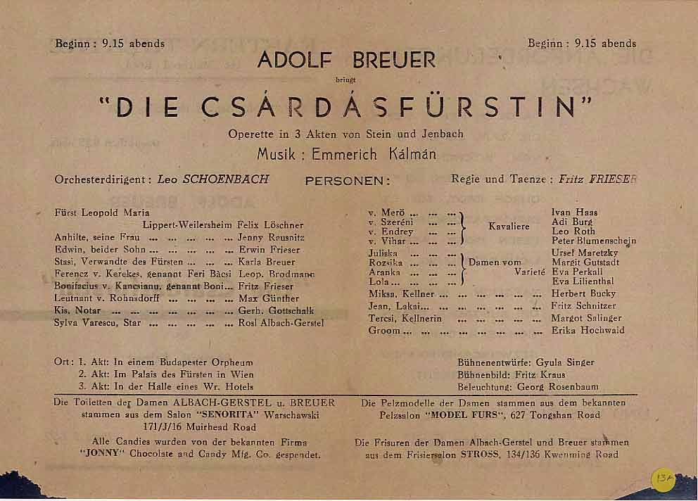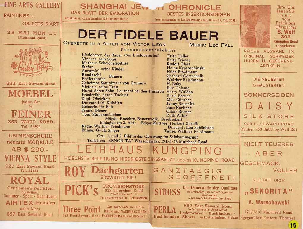Shanghai refugees have also enjoyed many operetta