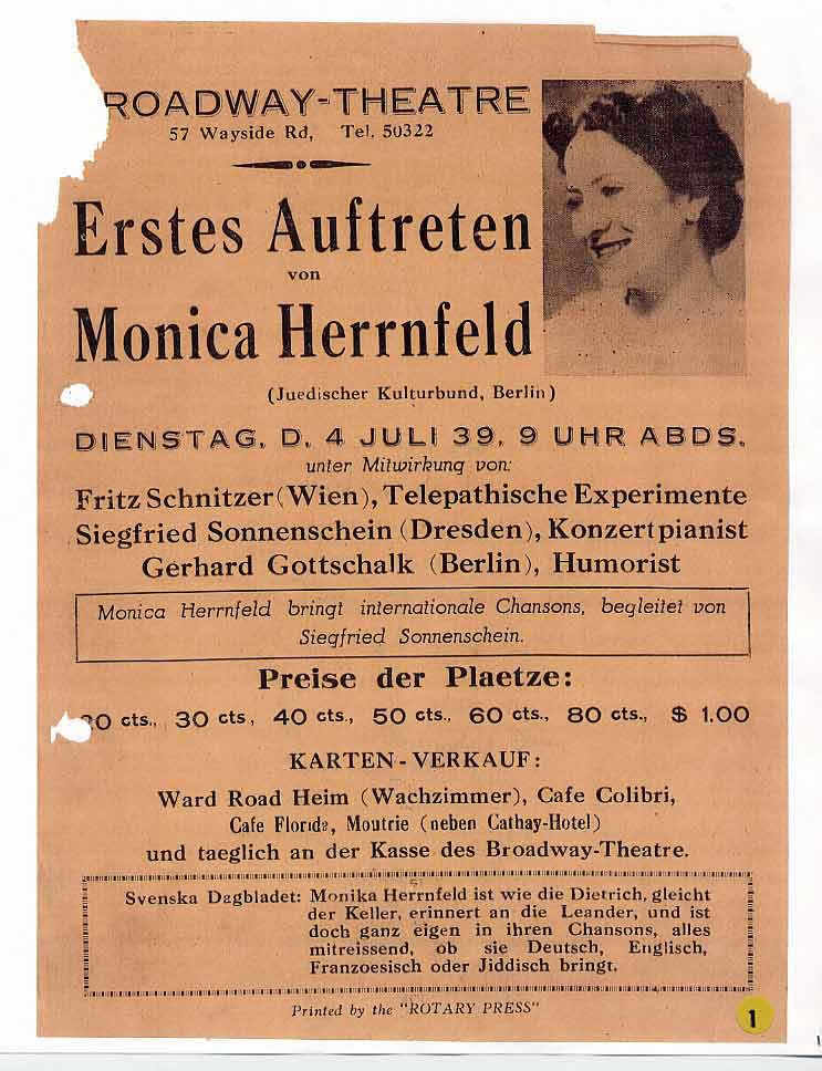Monica Herrnfeld who made her first appearance in 1939 at the Broadway