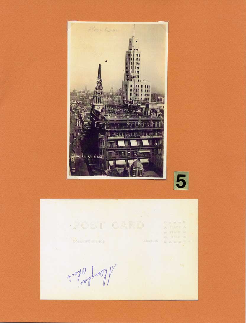 During its 1930‘s and 1940‘s heyday, Nanking Road housed the Shanghai‘s four main department stores -~ Wing On Co., Sun Sun Co., Sincere Co., and Da Sun Co. Across the road from the Sincere Co. was Wing On Co., shown from an aerial view on the postcard in figure five