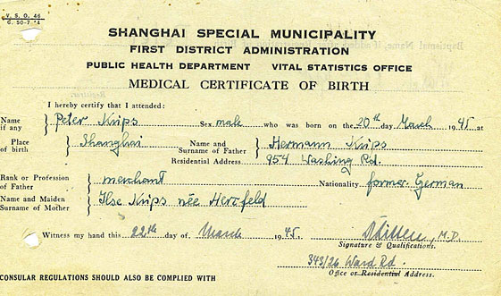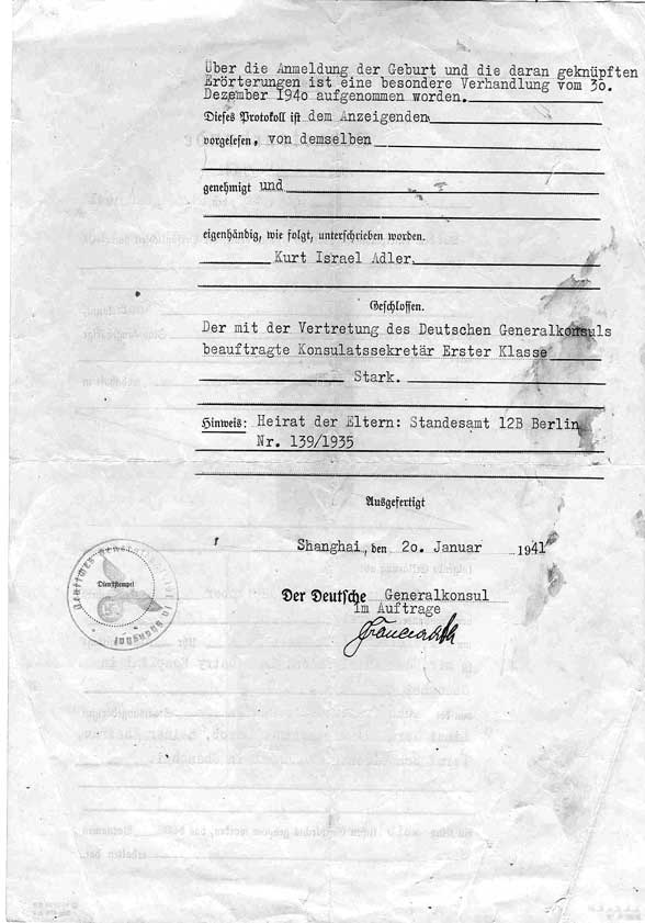 Name registration by the German Consulate General of  Shanghai.
